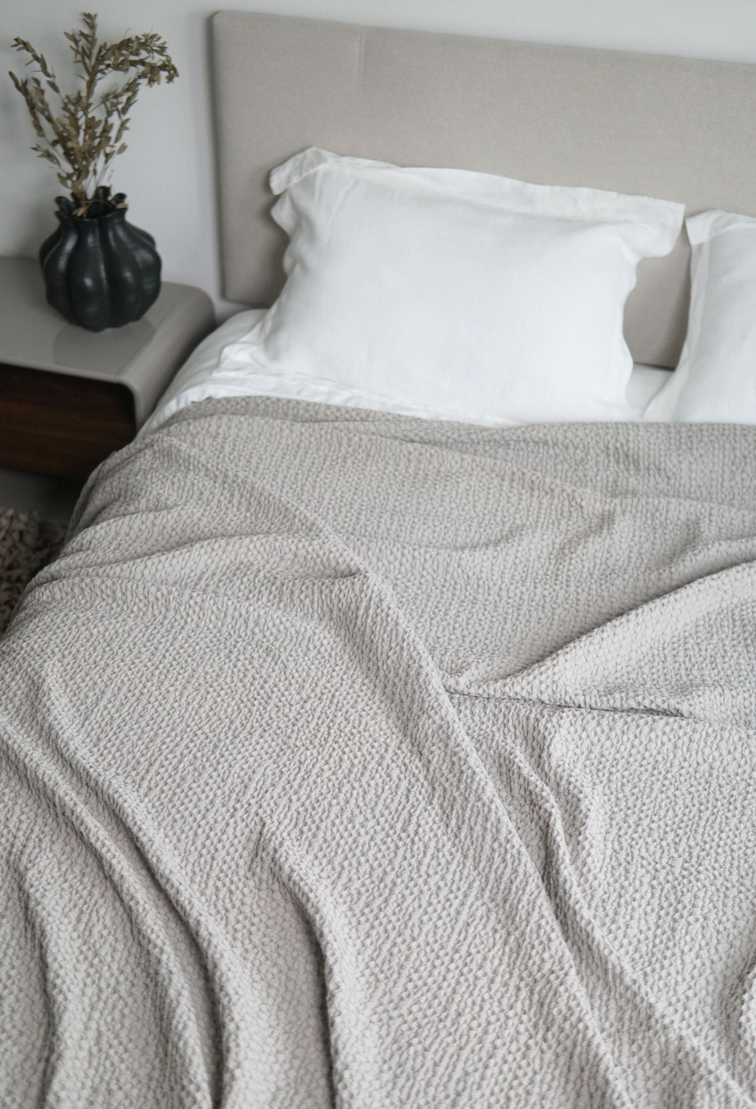 Die vielseitige Tagesdecke Bloom kann als stilvolle Tagesdecke für Ihr Bett, als gemütliche Decke für kühlere Nächte oder als dekorativer Akzent in Wohnzimmern verwendet werden. Erleben Sie die Multifunktionalität dieser grauen Tagesdecke und werten Sie Ihren Wohnraum mit ihrer eleganten Präsenz auf.