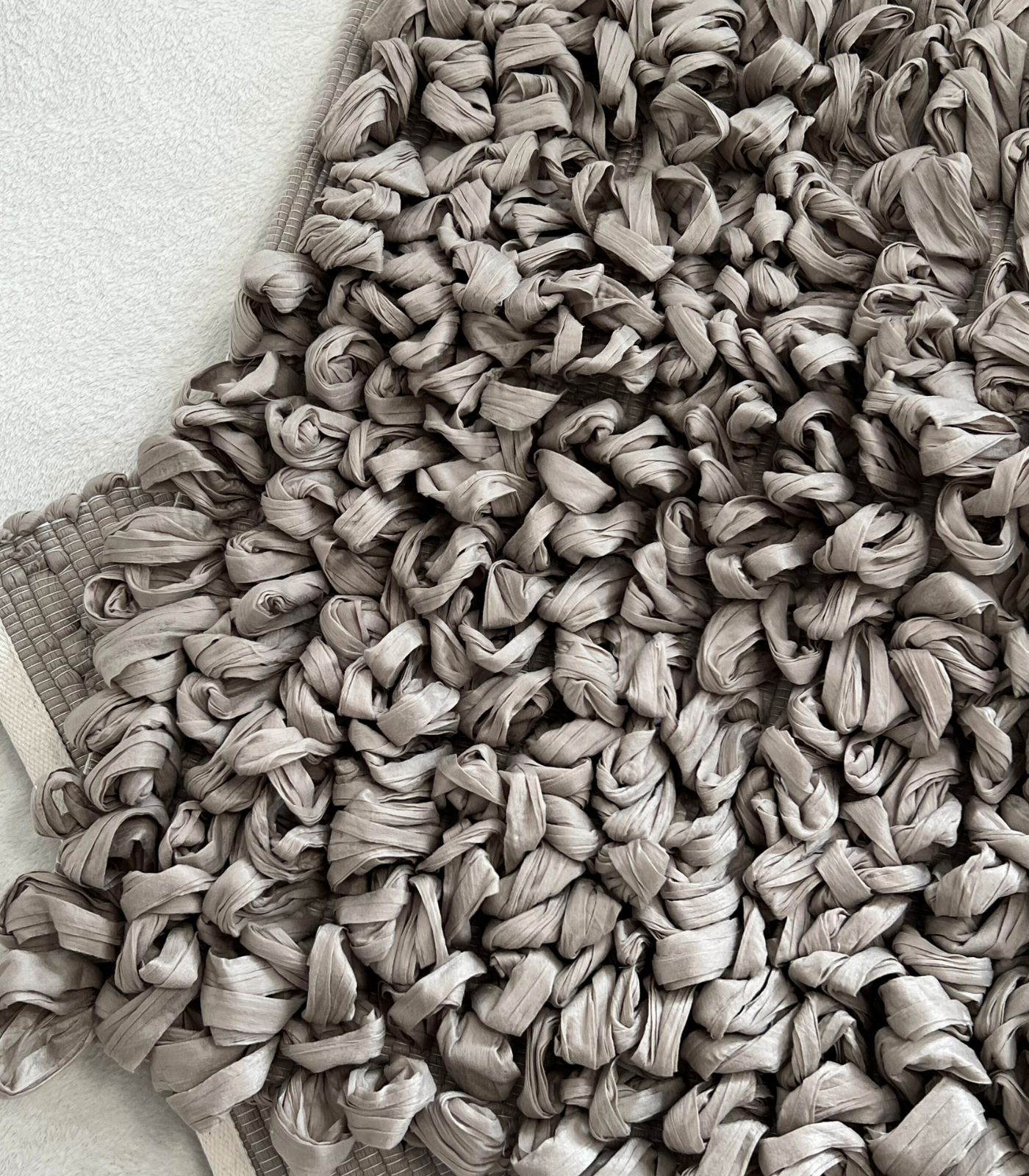 Fabriqué à partir de textiles recyclés, ce tapis met en avant notre dévouement à la durabilité et au luxe. Chaque pièce est un témoignage du design éco-responsable, transformant les déchets potentiels en accents doux et élégants.