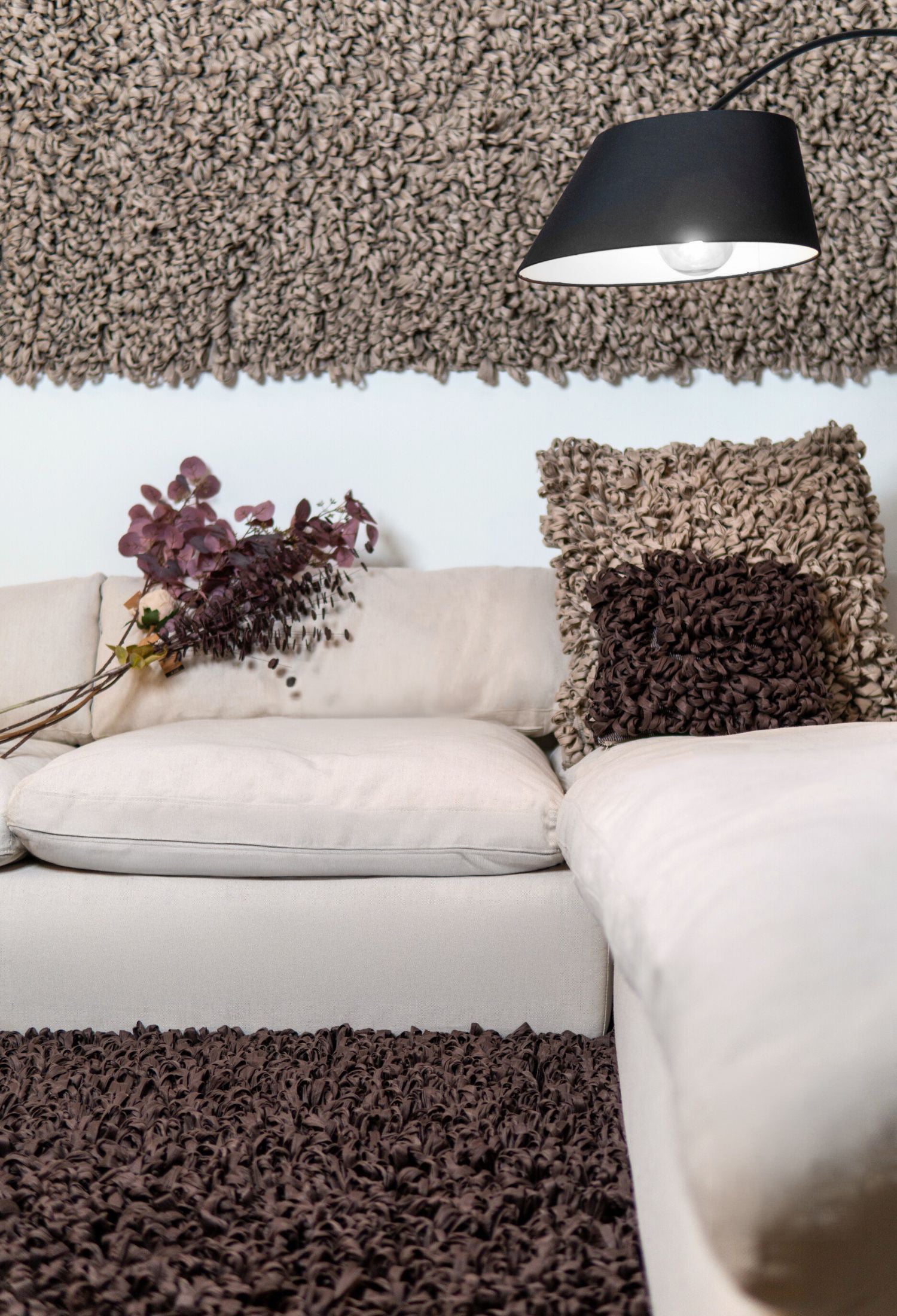 Fabriqué à partir de textiles recyclés, ce tapis met en avant notre dévouement à la durabilité et au luxe. Chaque pièce est un témoignage du design éco-responsable, transformant les déchets potentiels en accents doux et élégants.