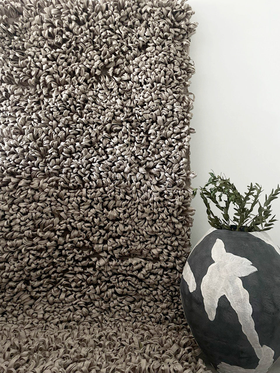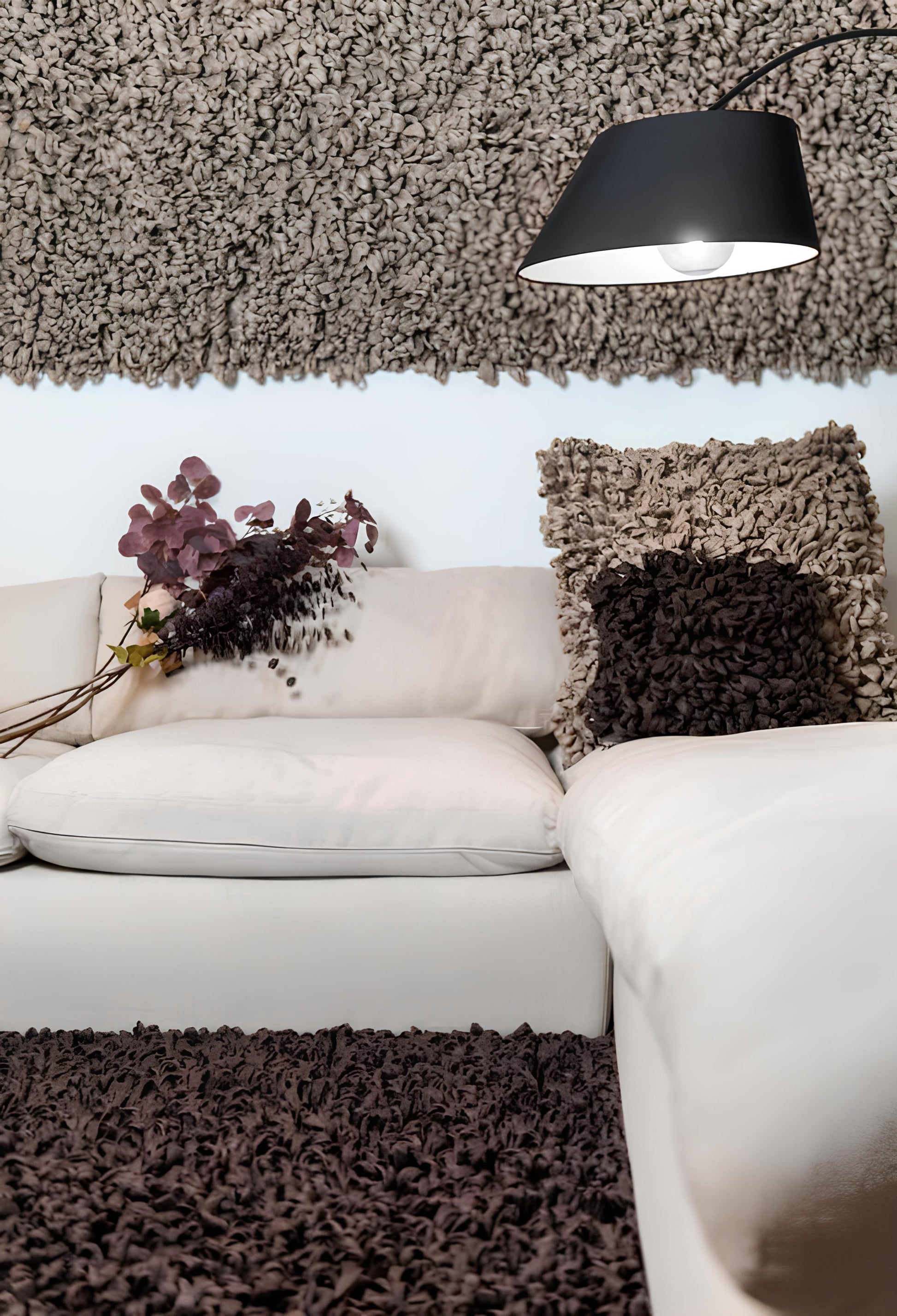 Fabriqué à partir de textiles recyclés, cette décoration murale met en avant notre dévouement à la durabilité et au luxe. Chaque pièce est un témoignage du design éco-responsable, transformant les déchets potentiels en accents doux et élégants.