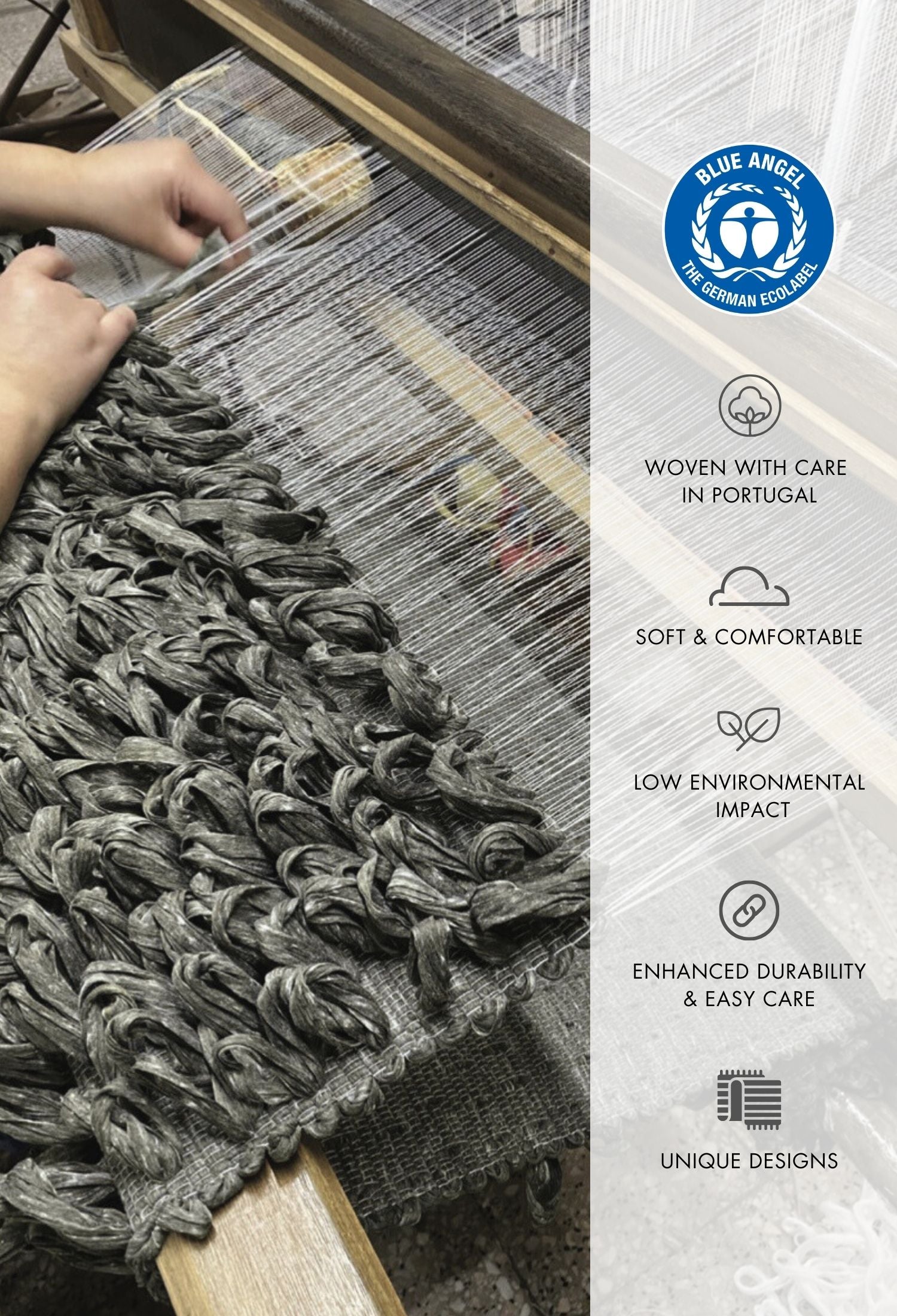 Fibres mixtes. Fabriqué sur des métiers à tisser manuels au Portugal.